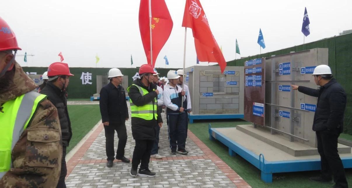 隨后大家來到質(zhì)量樣板展示區(qū)及安全生產(chǎn)體驗區(qū)進行觀摩、體驗,在質(zhì)量樣板展示區(qū),詳細講解了我公司質(zhì)量管理標(biāo)準(zhǔn)化施工及樣板引路的質(zhì)量管理理念,重點介紹了我公司在BIM技術(shù)應(yīng)用、新技術(shù)新工藝應(yīng)用、安全文明及綠色施工等方面的精細化管理以及取得的成績,表示公司將繼續(xù)以高質(zhì)量、高品質(zhì)、高效率完成息縣高級中學(xué)建設(shè)工作的決心。